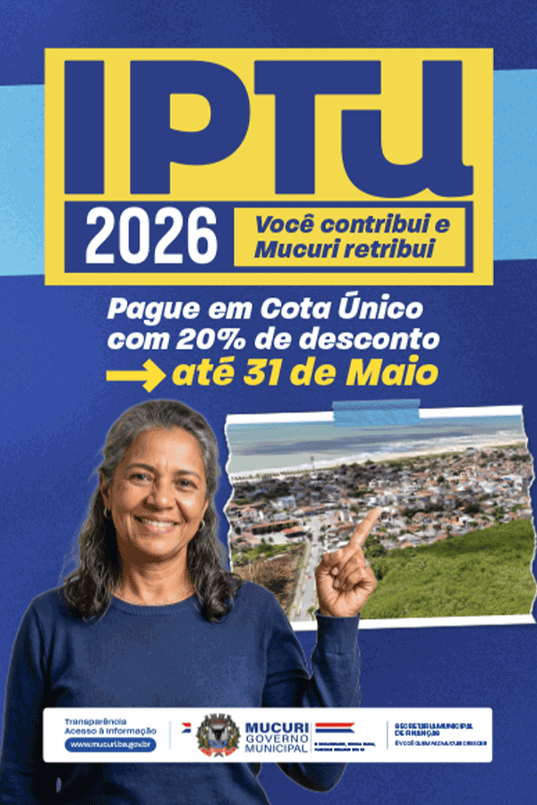 A Prefeitura de Mucuri, por meio da Secretaria Municipal de Finanças, iniciou a campanha IPTU 2026 com uma mensagem direta ao contribuinte: “Você contribui e Mucuri retribui”. A [more…]